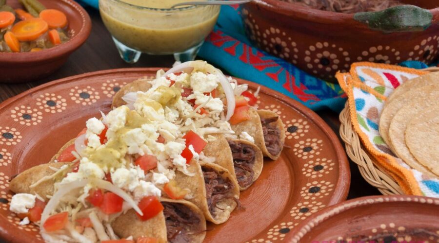 - In a hot pan, reheat the tortillas and spread the beans with a spoon and add the meat, folding the tortilla in three.