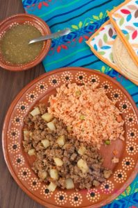 In Méxic, it is usually prepared with ground meat and potatoes cooked in a tomato sauce, although each family surely gives a personal touch to it.
