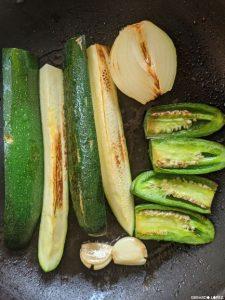 - Lightly fry the zucchini, chillies, onion and garlic; remove when starting to get brown and place in a blender.